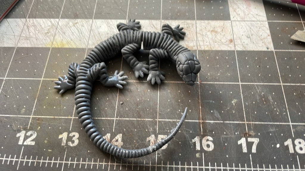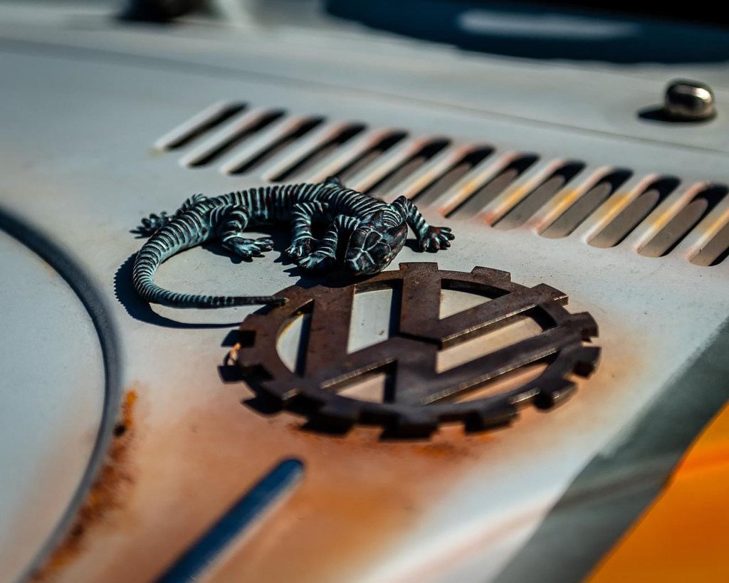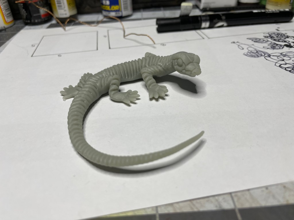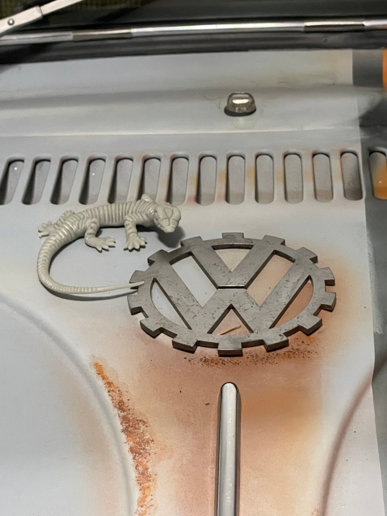 I wanted a mascot! So I commissioned a young and talented 3D modeller in a far off land to create a lizard for me. I 3D printed it on my Elegoo Saturn and then decided it needed something more. Why of course! He needed 6 legs! So I printed a second one and sectioned them both, added in a third set of legs. But he needed something else… I added some horns with some modelling clay to make him more of a baby dragon. I wanted to try my hand at creating a oxidized copper look so I based it in a dark metallic paint then with a few different blues and teals heavily thinned I layered it on. I think the effect is pretty realistic. Now I have a mascot! He lives on my car, BeetleJuice.
