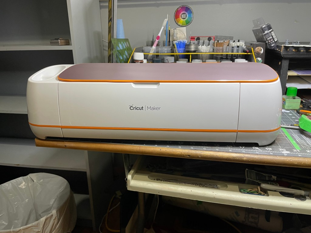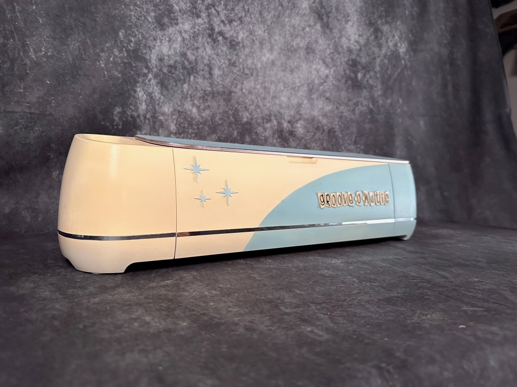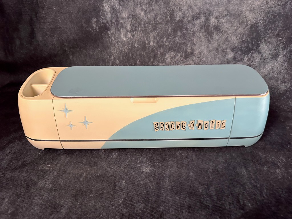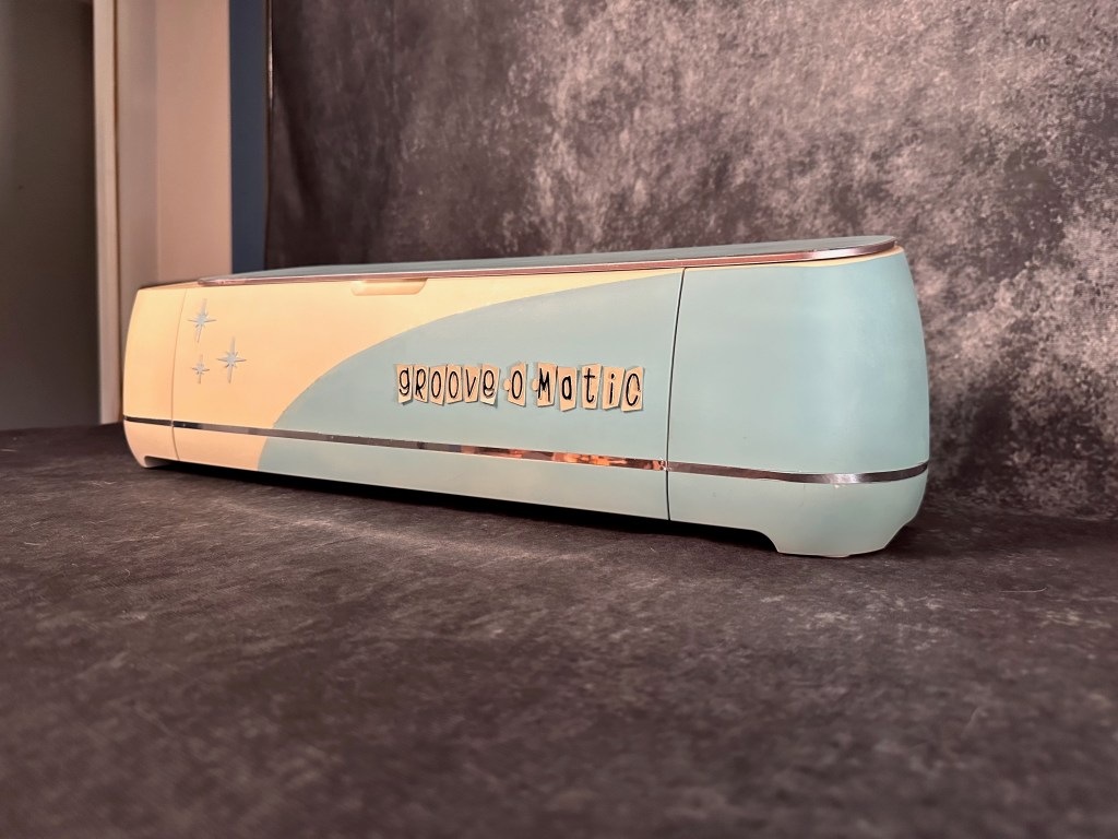 My motto is “A world where style and aesthetics remained an integral part of a product’s design”. Somewhere, and at sometime, people stopped caring about style when designing products. The tech we have today is amazing but the industrial design is as boring as cardboard! I looked at my Cricut machine and thought “I need to make this cool”. I love the old appliance styling of the 1950’s with their retro-futuristic starbursts and two-tone paint schemes. Logo was created with a retro-cool font and cut out of 1mm styrene on the machine itself! The Groove-O-Matic was born!