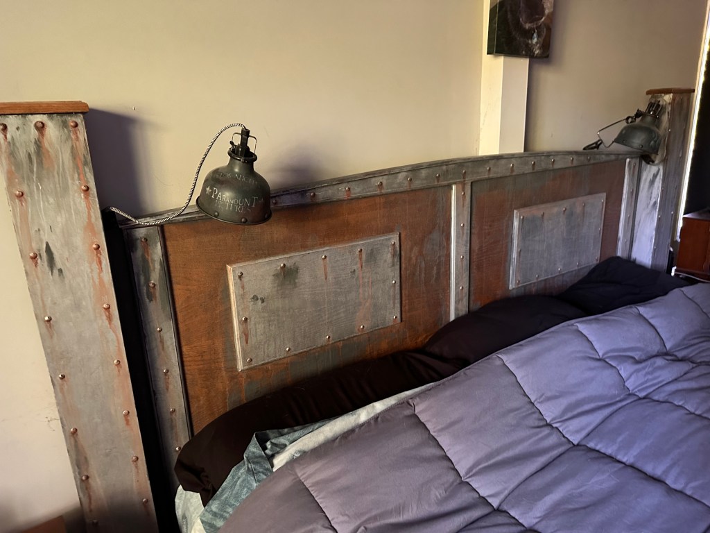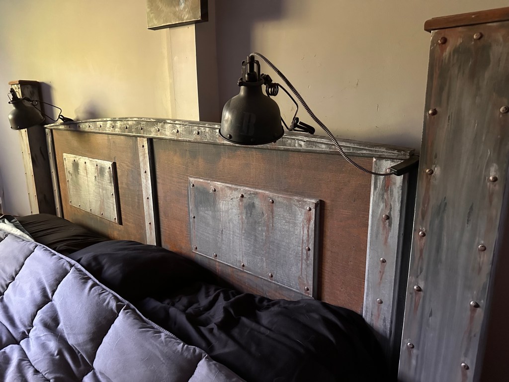 I was bored one weekend and I was bored of my bedroom decor so I had a little painting fun! Rivets, filler, paint, weathering, some fun old letter templates and now things are looking cool…